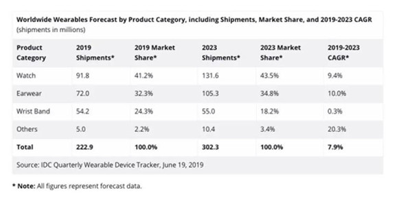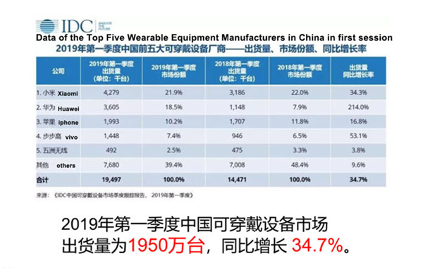According to data report, Global wearable market grows steadily and shipment is expected to reach 222.9 million units in 2019. It is expected to grow to 302.3 million units in 2023 with a composite growth rate of 7.9% in five years. In the first quarter of 2019, China’s wearable equipment market shipped 9.5 million units, an increase of 34.7% over the same period last year.